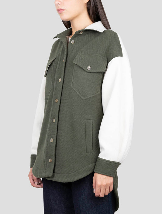White Green Wool Coat